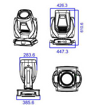 Input voltage: AC120V-240V, 50-60Hz Rated power: 600W Light source: OSRAM SIRIUS HRI 440W WD41MM Channel mode: 16CH Display: 2.8 inch touch screen display screen, capable of reversing 180 °; Color disc: 11 color chips+white light; Fixed pattern disc: 17 patterns+white light; Prism: 6 prisms+16 prisms+32 prisms, with overlapping prisms and atomization function; Light output angle: 2.8 °; Dimming: 0-100% mechanical dimming, supporting mechanical strobe and adjustable strobe effects, supporting strobe macro function, lens group optical system, electric focusing, linear amplification; Adopting a photoelectric reset system, it can automatically retrieve and reset in case of misoperation; Positioning technology: The use of a magnetoelectric positioning system replaces the traditional Hall positioning system with magnetic components, resulting in higher accuracy and reliable performance. USB: Supports unplugging the address code in case of no power supply, and can be used as an external interface for software upgrades; Horizontal: 540 °, resolution 8/16Bit; Vertical: 270 °, resolution 8/16Bit; IP protection level: IP20;